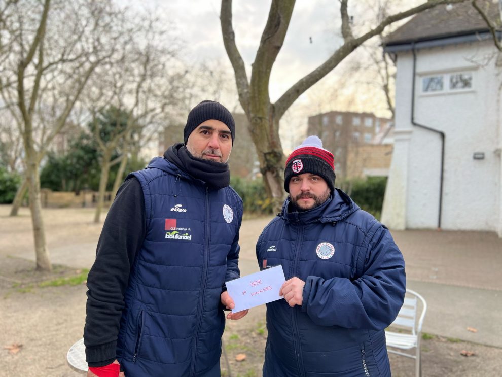 Sofiane Mehdi (left) and Jonathan Castaing (right) prevailed in the February Doubles at the new West London pétanque venue based at South Park, Fulham not far from Wandsworth Bridge on the River Thames.