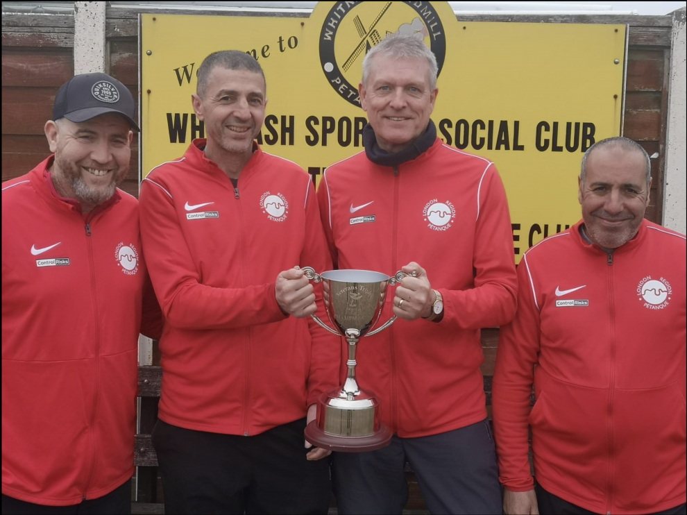 Pre-tournament favourites Mokhtar Benarab, Hakim Dahmani, Sofiane Lachani and Matt Blyton gave a faultless display over two days at the Whitnash Pétanque Club to be the first winners of prized England shirts in 2025.